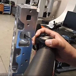 Voids will occur in deep features such as holes, slots, troughs, etc. For laser line scanners used on CMM arms, it helps to understand how the scanner works. A laser is emitted from one side of the scanner at an angle to the receiving camera on the other side of the scanner. The angle makes a “V” that can experience being cut off inside of holes or other features. This can be overcome to some degree by rotating the scanner 90 degrees and attempting to scan from there, and holes often require rotating the scanner 360 degrees around an angled approach to the hole to get data inside the hole. Of course, switching to the arm’s contact probe may work better to obtain data within the hole. However, one must understand that probed data needs to be probe-compensated where the scanned data does not. The technician must keep the data separated and/or make sure probe compensation is applied in feature-fitting or other means as they go. Learn more in our comprehensive Performance Racing Engine Head Porting & Reverse Engineering video series.