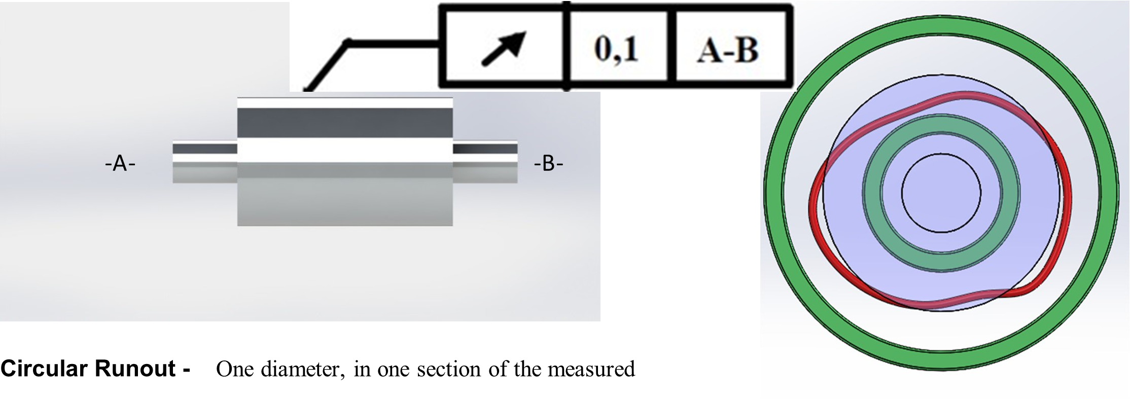 – Circular Runout: all points of each circular element (cross-section) of the considered feature must lie regardless of the size of the considered feature.