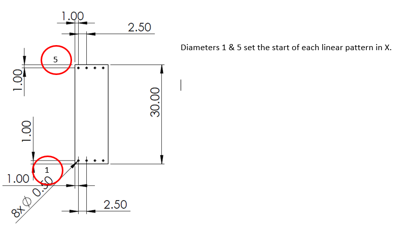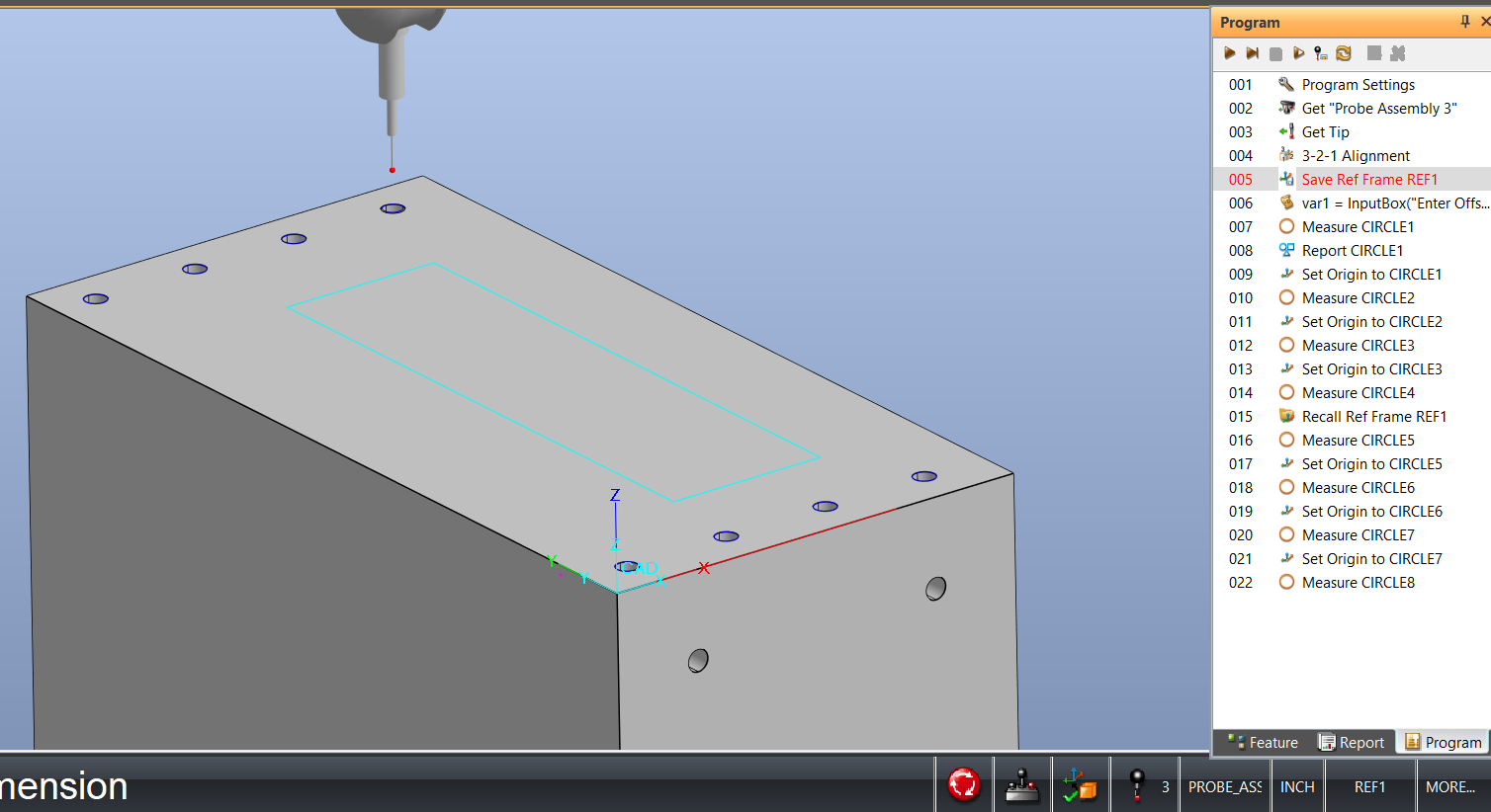 After Diameter 1 & 5 are measured the alignment origin is set to the subsequent diameter to maintain the hole spacing. The diameter spacing is 2.500 in X.