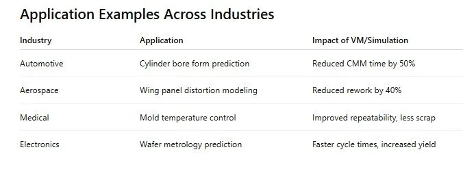 For example, semiconductor manufacturers often employ virtual metrology to monitor wafer characteristics such as film thickness or etch depth without halting production. In high-precision environments like this, the ability to make quality decisions instantly—without waiting for physical inspection—can lead to significant gains in both yield and efficiency.