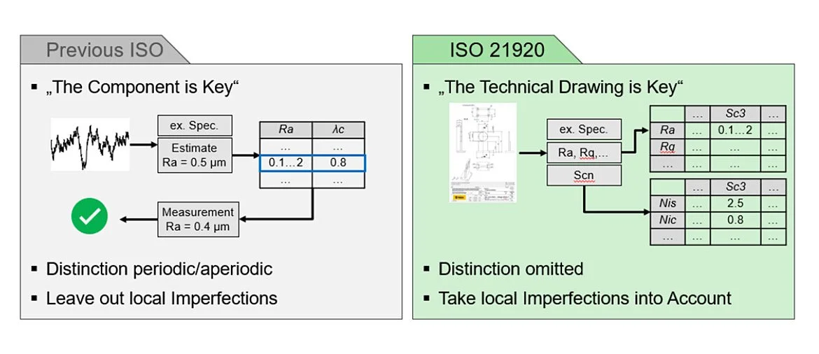 Figure 2: A brief summary of some components of ISO 21920, including the changes made to the technical drawing. Source: Polytec