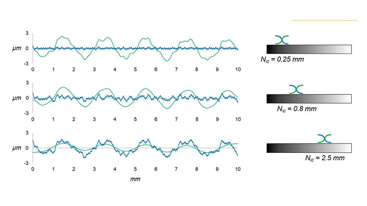 Figure 4: An analysis of how the nesting index changes the resulting profile. Green is longer wavelength components and blue represents shorter wavelength features. Source: Polytec
