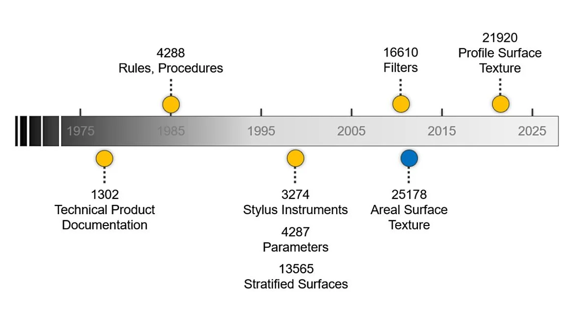 Figure 1: A timeline of ISO standards from 1975 through the present. Source: Polytec