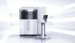 Additive manufacturing adds materials layer by layer. Featured here is a selective laser sintering (SLS) system. With SLS technology, it is possible to print complex internal geometries without supports.