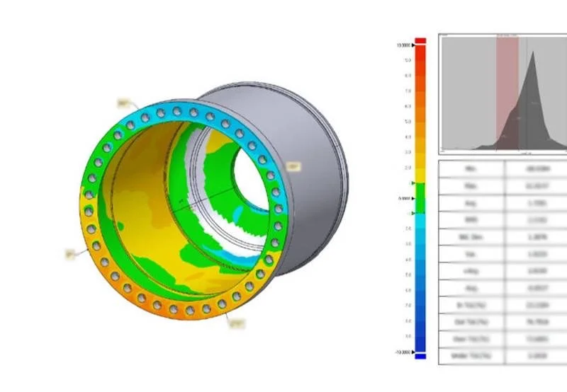 The tolerance report generated from the 3D scan offers a clear, visual understanding of the deviations, making it easier for engineers to assess and resolve issues.