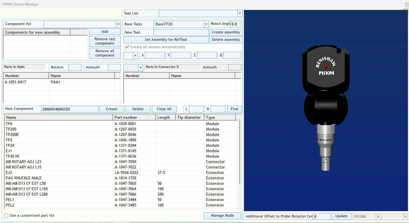 1) The Component List. This list consists of the Renishaw components that can be attached to the assembly based on your sensor configuration. This list will update to the new component type as you assemble your sensor.